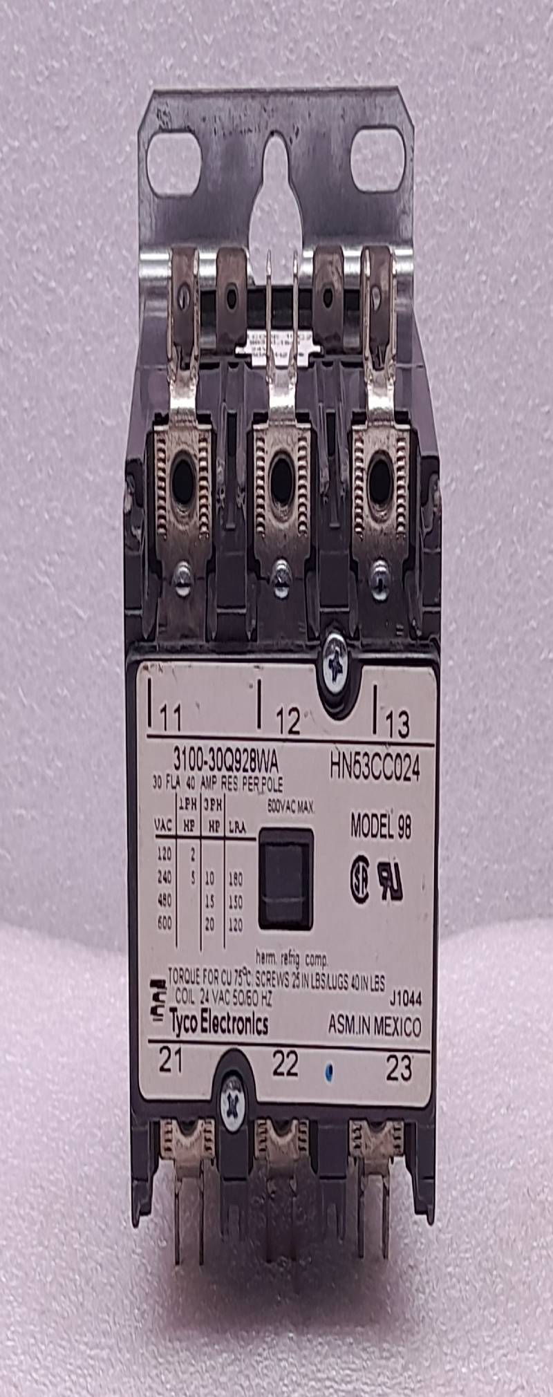 Tyco Electronics 3100-30Q928WA Contactor Model 98 30FLA 40AMP