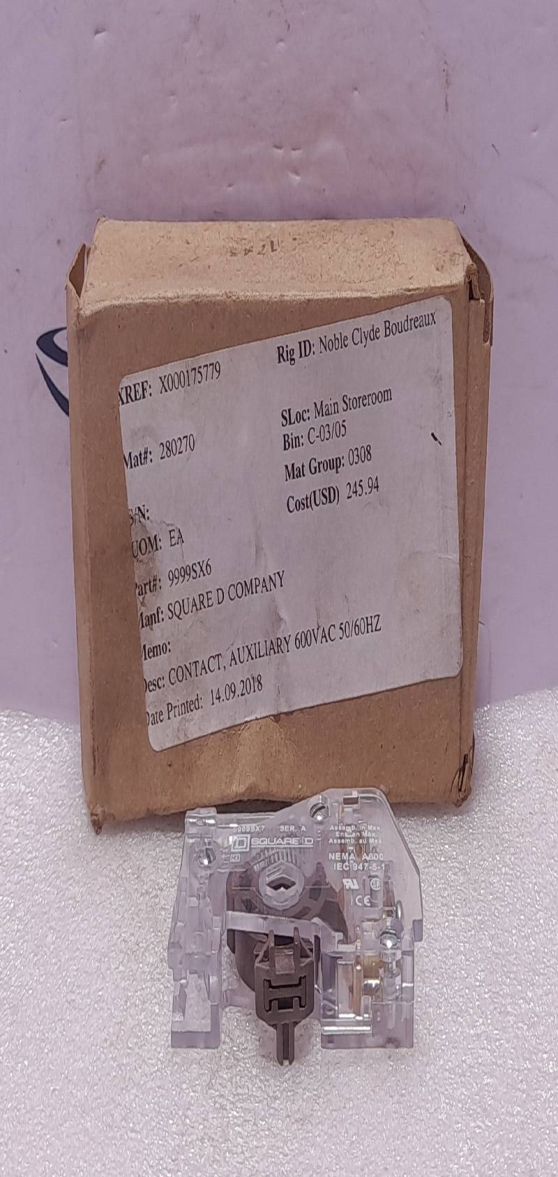 D Square 9999SX7 Auxiliary Contact 600VAC 50/60Hz