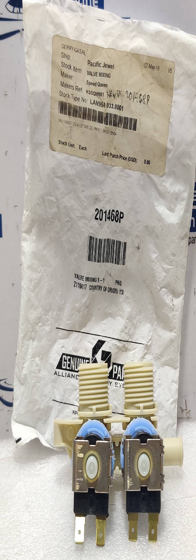 Alliance Laundry 201468P Mixing Valve E-1 K-78683 Speed Queen KSSQW001